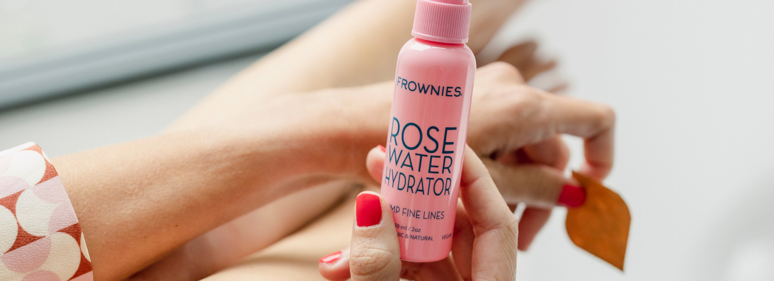 De Rose Water Hydrator van Frownies heeft deze voordelen ook! Het is een gezichtsspray die is gemaakt met biologisch rozenwater en andere natuurlijke ingrediënten zoals aloë vera en kamille-extracten. Het wordt verpakt in een handige spuitfles die je gemakkelijk in je tas kunt meenemen voor hydratatie onderweg.